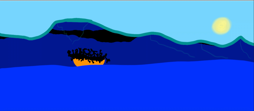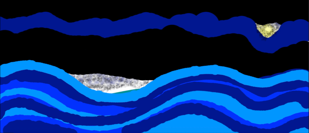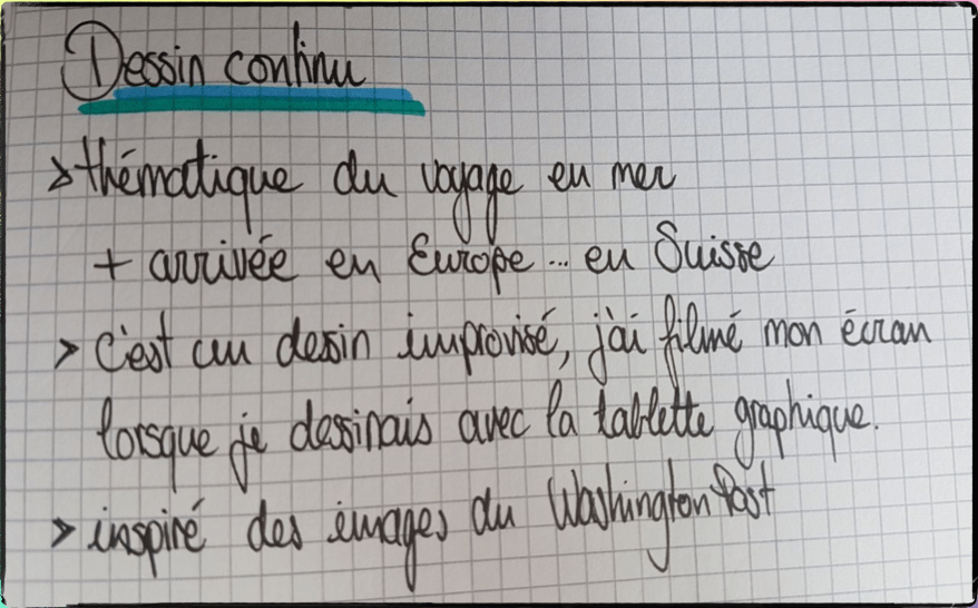 J’ai utilisé une tablette graphique avec le logiciel Paint X. J’ai mis ici deux captures d’écran, mais en réalité c’est un dessin continu, qui évolue au fur et à mesure. J’ai enregistré mon écran pendant que je dessinais.